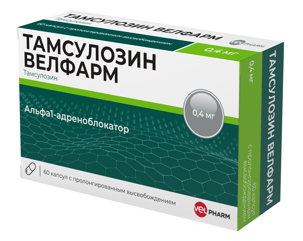 Действующее вещество: тамсулозина гидрохлорид пеллеты 0,15% 267 мг, содержащие тамсулозина гидрохлорид 0,4 мг